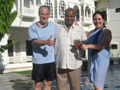we really hope you are fine and that you have many guests to tour round magnificent Rajasthan. We also hope your wife and children are well and that you can see them soon during your tours. We were back in Italy last Thursday in the evening and our journey to Goa was also very fine. We had a very pleasant journey by train and we spent some days on the beach at Benaulim, a very peaceful place. Then we went by train to Bombay and we were very lucky to stay in a very pleasant area called Colaba. Our journey to India has been absolutely perfect from the beginning to the end and we already long to come back next year (hopefully. More than everything, we would like to thank you for your absolutely perfect assistance throughout our journey to Northern India, to thank you for your perfect blend of professionality and human qualities, for wanting us to see everything and not miss any sight ( and also for including Bikaner and Bharatpur in our itenarary), for your flexibility, patience and perfect knowledge of Rajasthan, absolutely the most incredible and fascinating place we have seen in our life. Thank you also for the very nice, clean, cosy, inexpensive accommadations you have found for us in Rajasthan and in Delhi Please let us know when your website is ready. We really wish all the best to you and your family Laura & Alessandro from Italy